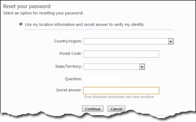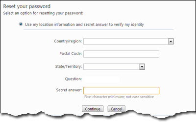 Select your country / region from the drop-down menu, enter your postal code, select the correct State / Territory and enter the answer to the security question is displayed. Please note, the address field will vary depending on your geographic location and what you provide at the time of account creation.